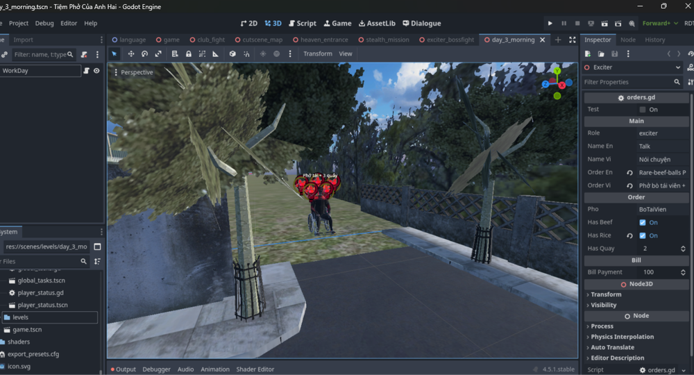 Nhưng điều khiến Tiệm phở của Anh Hai trở nên đáng nhớ không chỉ nằm ở tốc độ lan truyền hay những cột mốc lượt tải. Quan trọng hơn, đó là cách một người trẻ chọn kể câu chuyện rất Việt Nam bằng ngôn ngữ của game, bắt đầu từ những chất liệu nhỏ bé và quen thuộc nhất: một tiệm phở làng, một chú chó tên Vàng, nền gạch hoa, chiếc ghế nhựa xanh,... Không có nhân vật nào đại diện cho một nguyên mẫu cụ thể, tất cả được hình thành từ sự quan sát đời sống thường nhật. Văn hóa Việt trong game không được “giải thích”, mà hiện diện tự nhiên, lặng lẽ, đúng như cách nó tồn tại trong đời sống.